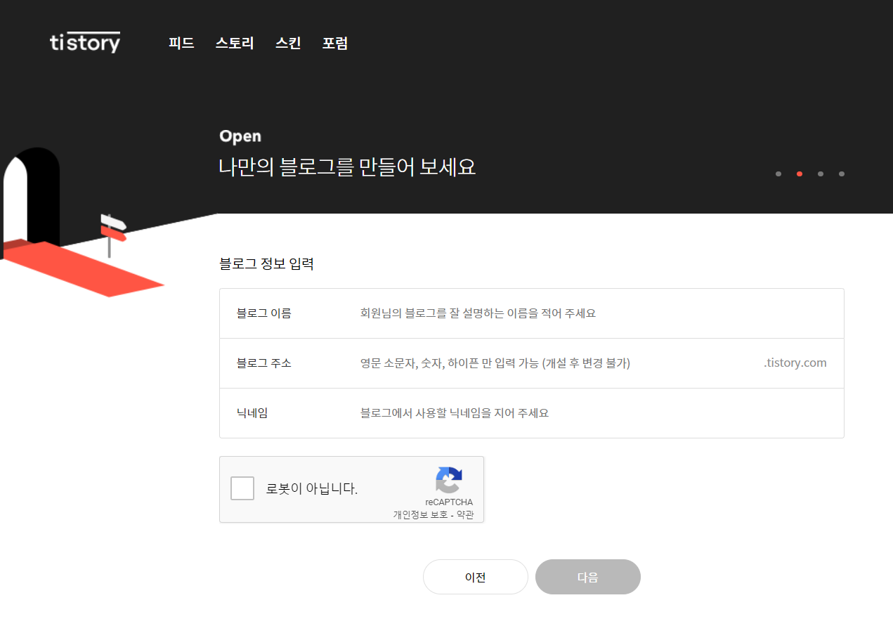 이전에는 티스토리 블로그를 생성하기 위해선