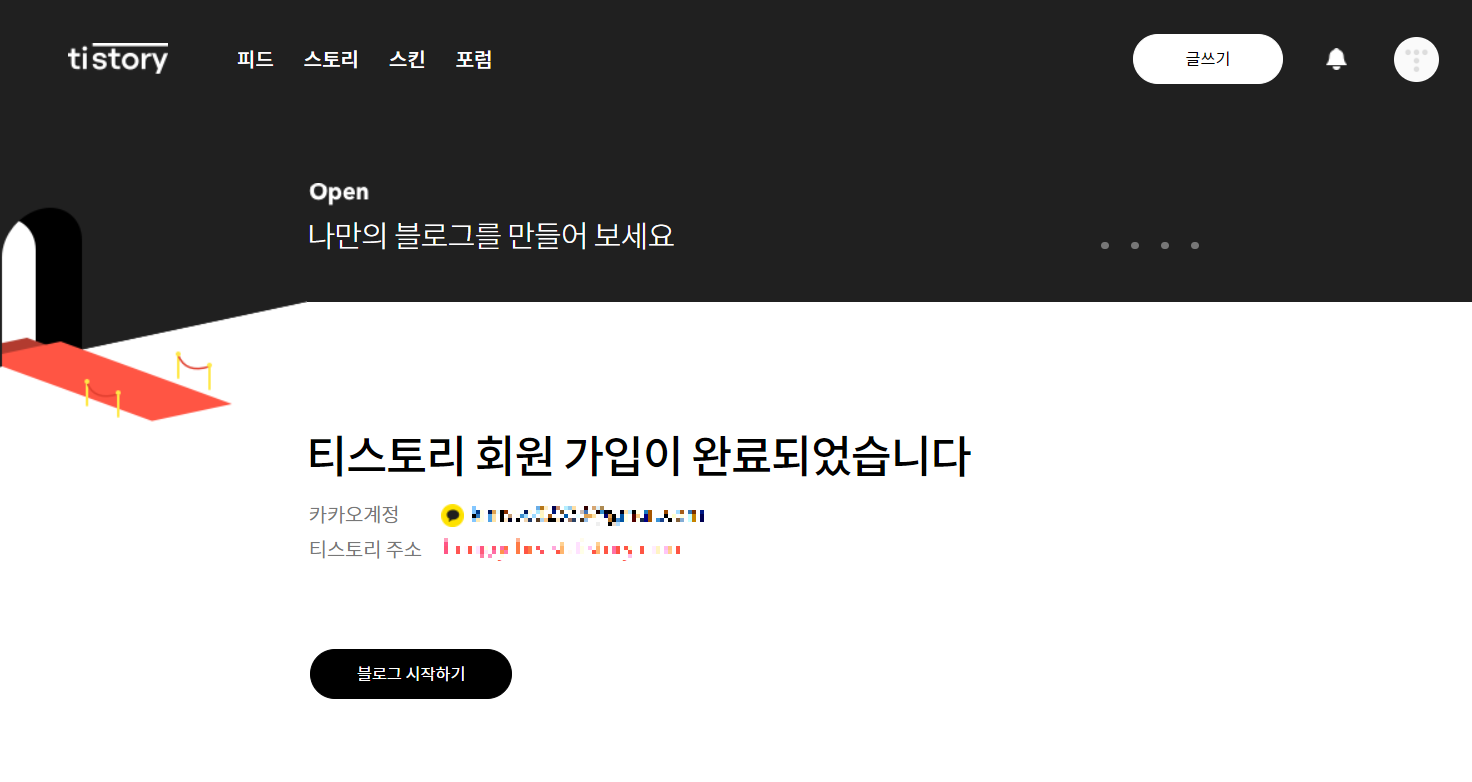 카카오 계정만 있다면 누구나 티스토리 블로그 개설이 가능합니다!